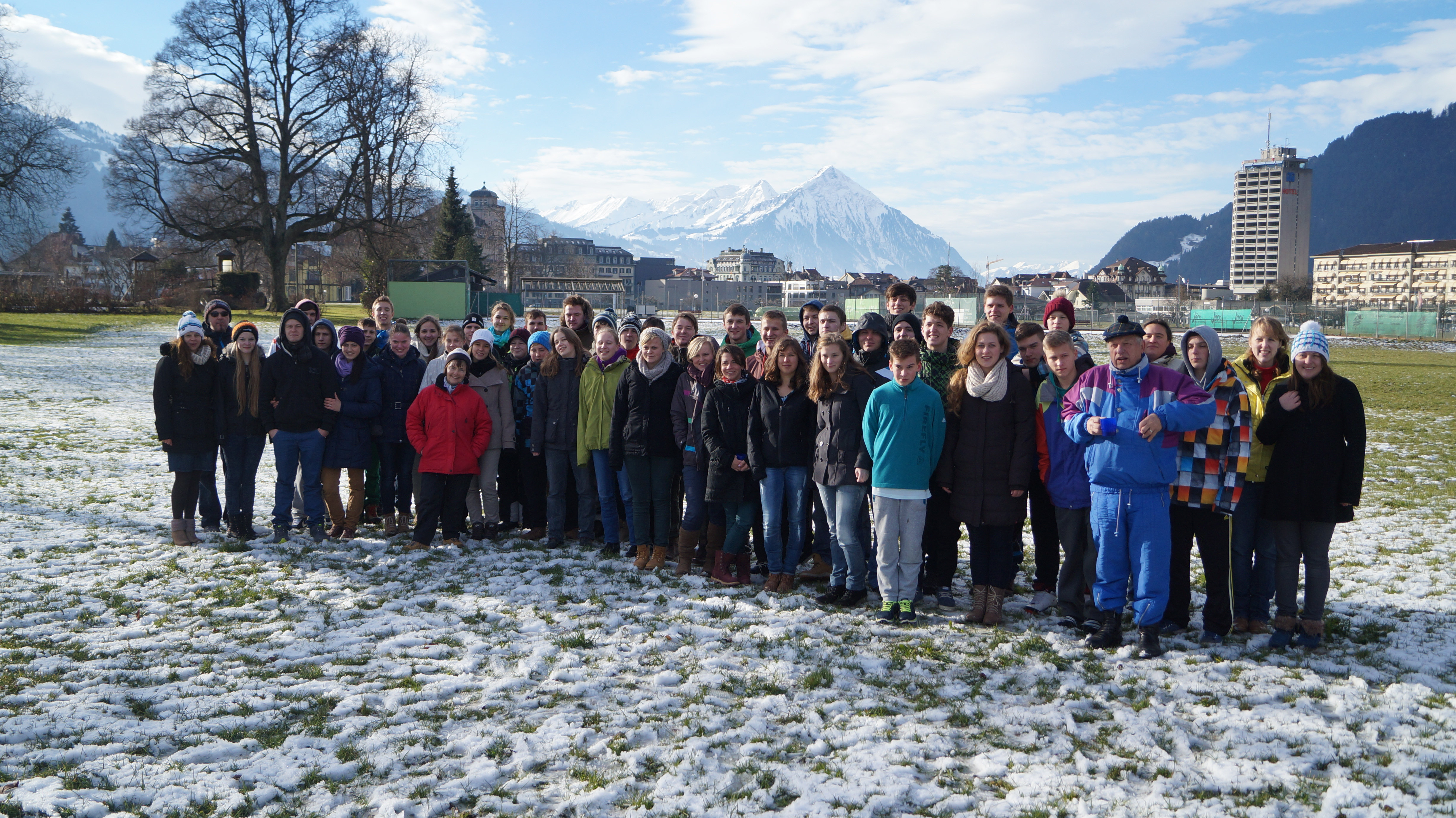 Über die Hälfte unserer 56 wintersportbegeisterten Skifahrer und Snowboarder reiste dieses Jahr am 27.12.2013 mit unserer Fahrzeugkolonne zu den Unterkünften im Haslihaus und im CVJM-Zentrum an. Als erstes erfolgte die Zimmereinteilung, und gegen 18:00 Uhr durften wir unsere erste gemeinsame Mahlzeit einnehmen. Anschließend versammelten wir uns im Ev. Erholungshaus Bellevue, um an der dortigen Abendbotschaft teilzunehmen. Am Abend vertrieben wir uns die Zeit noch mit Gesellschaftsspielen, bevor es dann gegen 23 Uhr in die Betten ging.